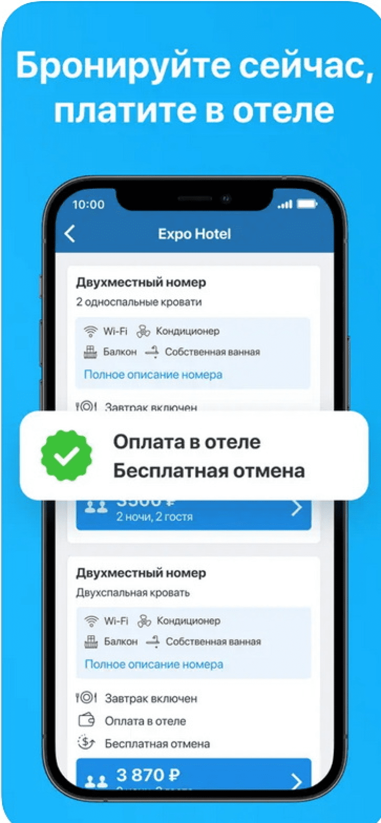 - подтверждение бронирования доступно в приложении даже в режиме офлайн;