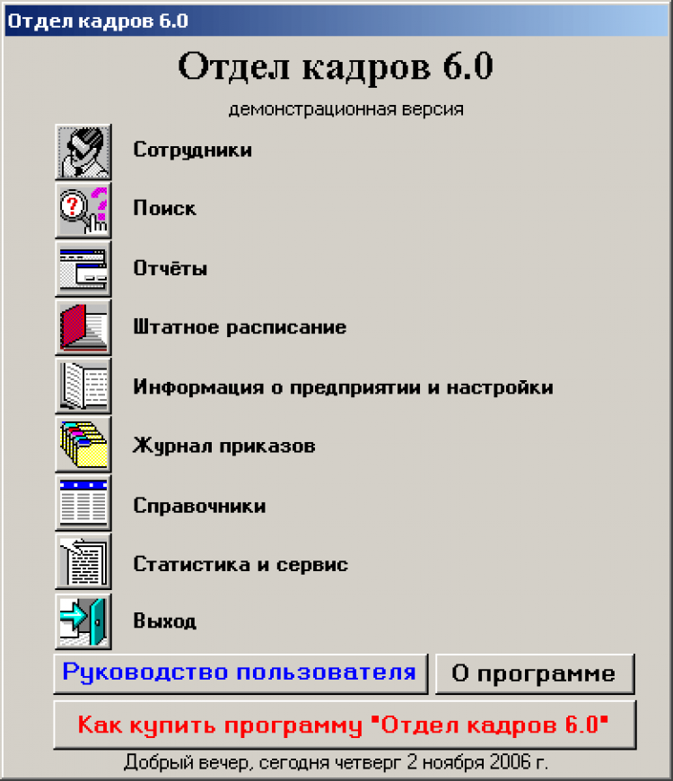 Основные возможности программы "Отдел кадров":