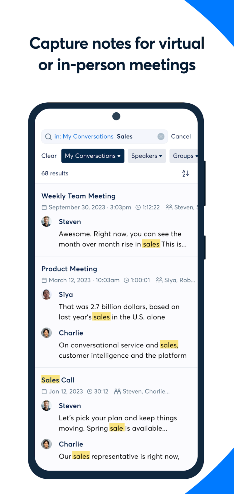 Одной из главных особенностей программы является возможность записи переговоров, обсуждений и других разговоров с участием нескольких человек. OtterAI распознает голоса говорящих и сохраняет заметки в понятном и наглядном виде.