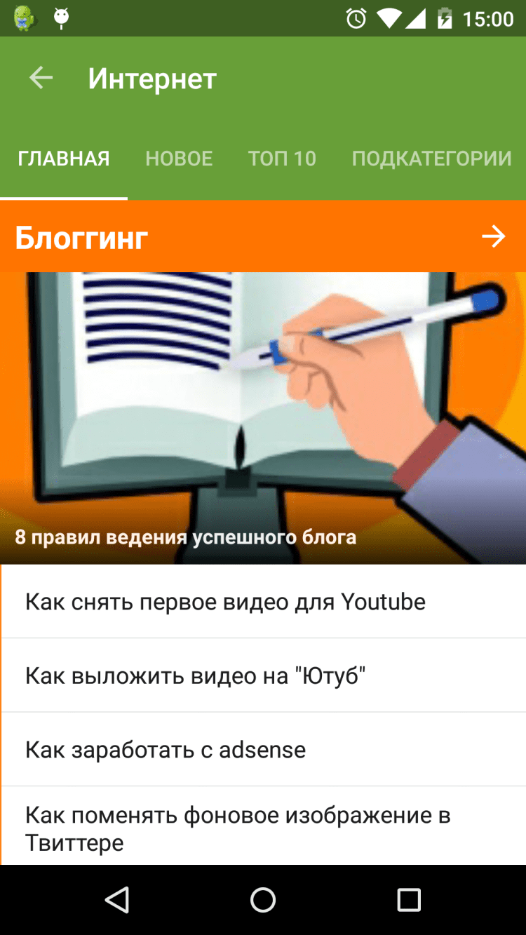 - избранные: позволяет добавить понравившейся статью в избранное, таким образом она будет доступна для чтения в офлайн режиме;