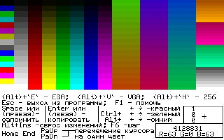 Palit - это программа, которая предназначена для подбора цветов и их сочетаний при создании программ, вебсайтов и решении других задач, связанных с цветом. Модуль под DOS позволяет выводить на экран в разных режимах (64 и 256K цветов) текущую палитру и изменять цвета, работает в формате RGB.