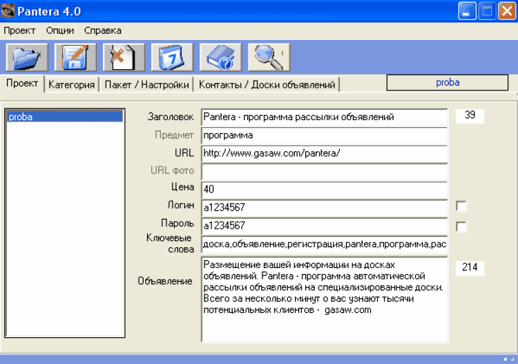 Данная программа экономит время на размещение объявлений. Всего за несколько минут о вас узнают во всей стране. Если вы хотите регулярно размещать свои объявления на досках объявлений, тратя при этом минимум времени, тогда Pantera это то, что Вам нужно!