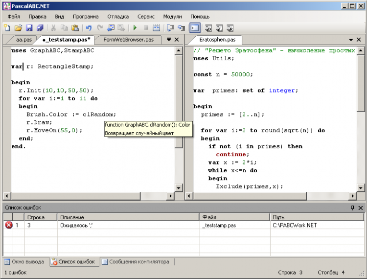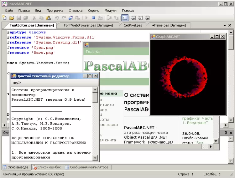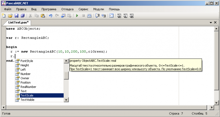 PascalABC.NET – это язык Object Pascal для платформы Microsoft.NET, содержащий все основные элементы современных языков программирования: модули, классы, перегрузку операций, интерфейсы, исключения, обобщенные классы, сборку мусора. Система PascalABC.NET включает в себя также простую визуальную среду, ориентированную на эффективное обучение программированию.