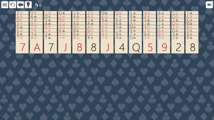 Обратите внимание, что в этой игре вы можете собирать последовательности и без учета масти, класть Короля на Туза, а также помещать в свободные ячейки любые карты.