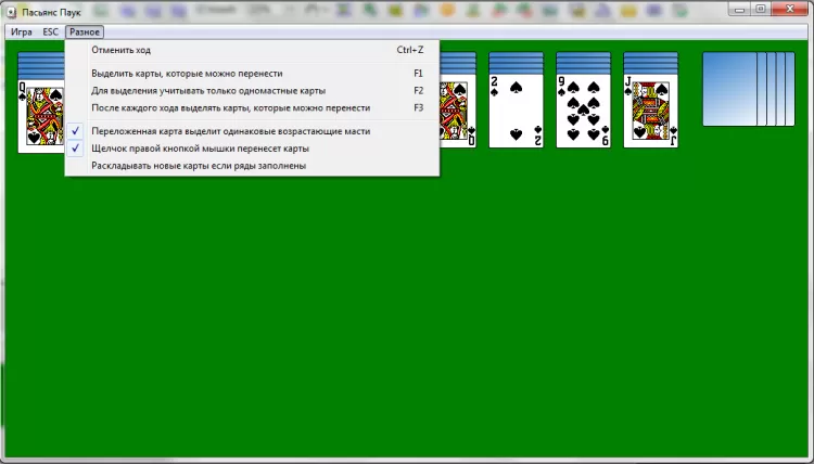- «F3» после каждого хода будет выделять карты, которые можно перенести;