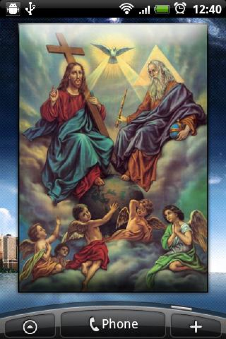На главном экране нажмите Меню -> Добавить -> Виджет -> Пасха - Троица.