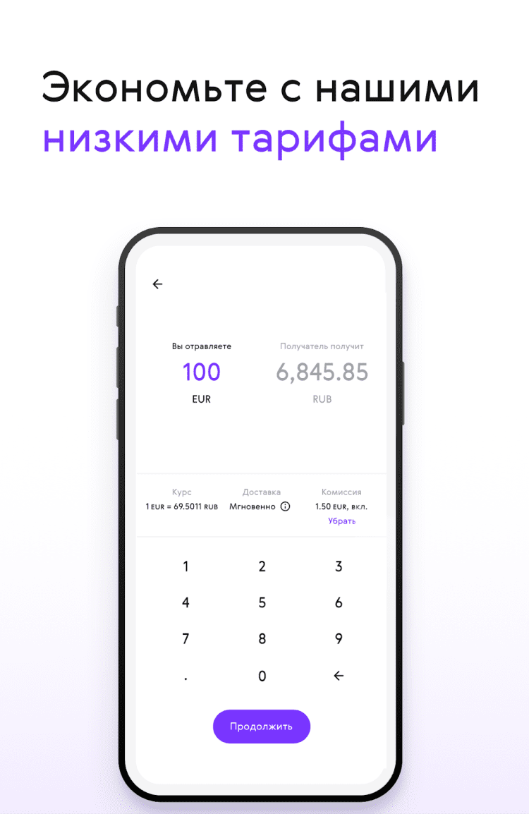 Перед вами программа, которая значительно облегчит перевод денежных средств как по России, так и за границу. Сервис предлагает фиксированную комиссию при переводе на дебетовые или кредитные карты. А переводы на банковские счета можно осуществлять бесплатно. Стоит отметить, что приложение обеспечивает максимально быструю передачу денег в 90 стран мира. Среднее время проведения операции составляет всего несколько минут.