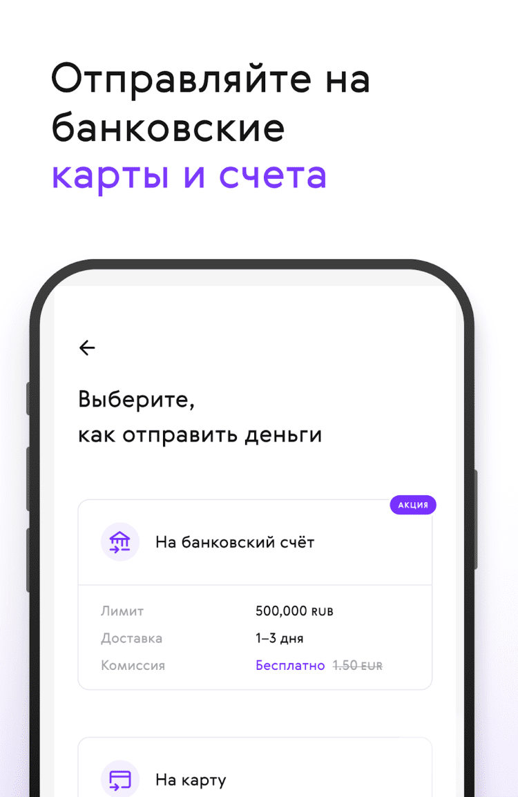 - фиксированная комиссия за переводы на банковские карты - 49 российских рублей, 199 тенге, $2, €1.5 или £1, в зависимости от страны отправителя;
