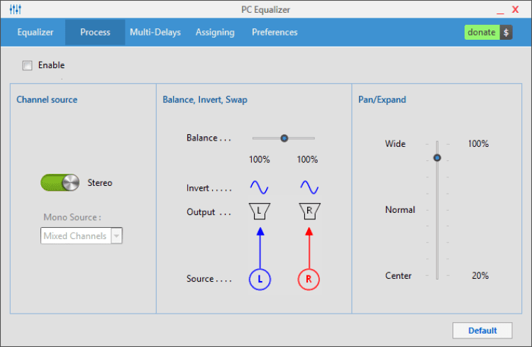 - управление правым и левым каналами (Stereo, Mono, Swap, Invert, Balance и пр.);