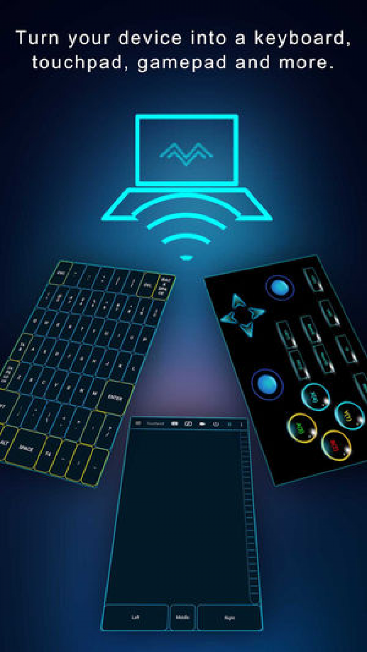 - возможность использования мобильного устройства в качестве беспроводной клавиатуры, тачпада или геймпада;