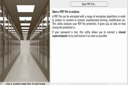 PDF Password Recovery Analyzer Утилита, которая поможет получить такую информацию о PDF-файле, как алгоритм, с помощью которого файл был зашифрован, а также оставшееся время, необходимое для взлома пароля этого файла. Если вы забыли пароль, установленный на PDF-файл, то на его восстановление, на домашнем или офисном компьютере, уйдет очень много времени. PDF Password Recovery Analyzer предлагает подключиться к суперкомпьютеру и задействовать его вычислительные мощности, чтобы быстро восстановить пароль.