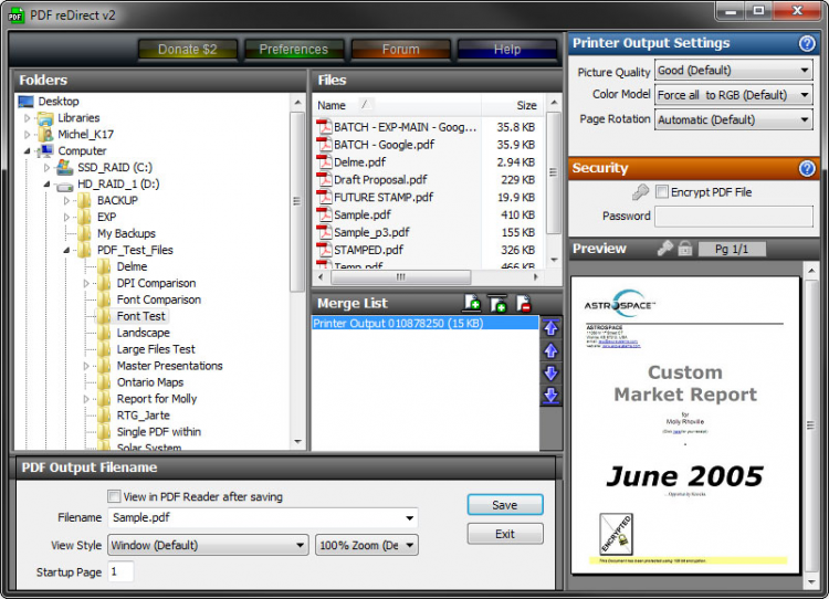 PDF ReDirect - это быстрая, простая в использовании и бесплатная программа, предназначенная для создания документов в формате PDF. Она создает новые документы путем "печати" их на своем виртуальном принтере.