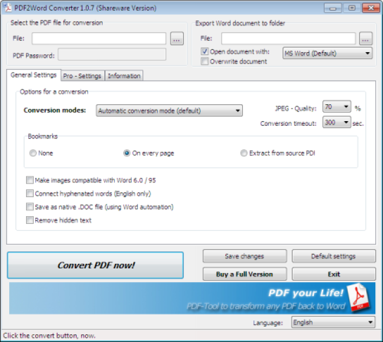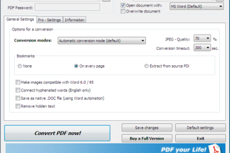 PDF to Word - это конвертер документов, с помощью которого вы можете конвертировать PDF в формат Microsoft Word. Эта программа проста в использовании, но предоставляет ряд дополнительных опций. PDF to Word позволяет выбрать режим конвертирования, качество изображений, переносить закладки и т.д. Программа проста в использовании и в ней разберётся абсолютно каждый.