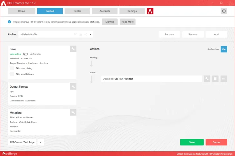 PDFCreator для Windows предоставляет возможность автоматически создавать виртуальный принтер, на который сразу же отправляется документ из программы. В итоге, вы получаете файл в формате ПДФ. Пользователь может одновременно создать два или три печатающих устройства, которые будут отличаться опциями и настройками.