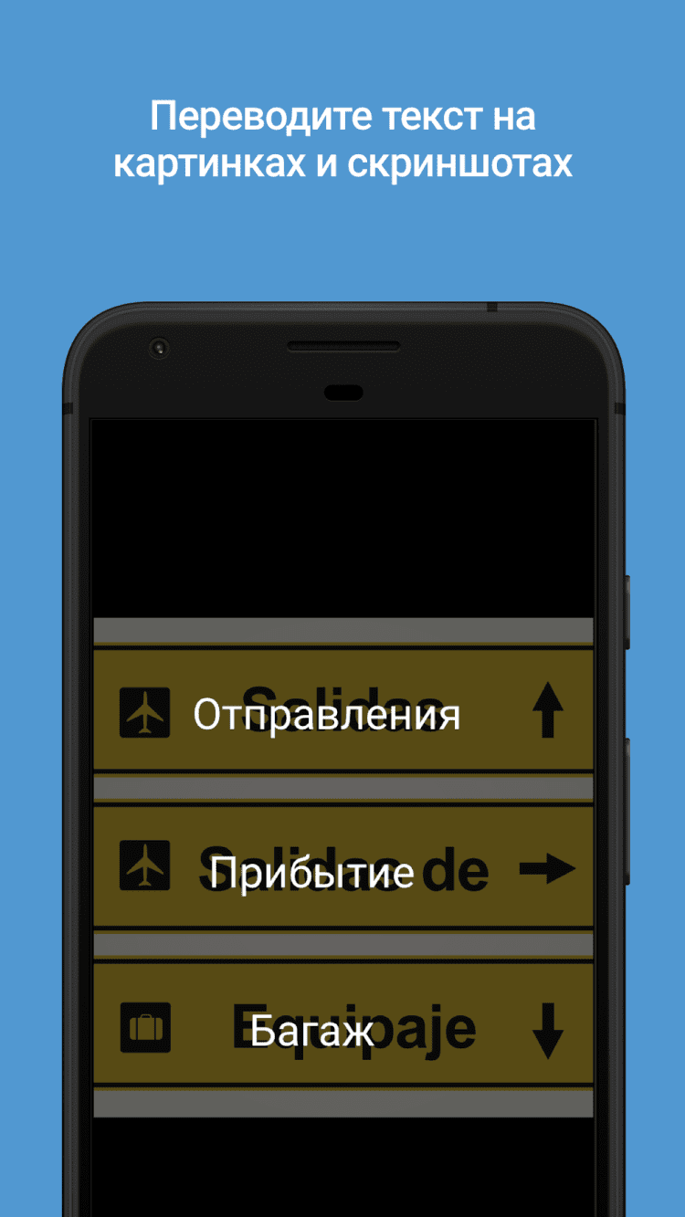 Поможет быстро перевести нужные фразы с одного языка на другой и станет незаменимым помощником в беседе с иностранцем.
