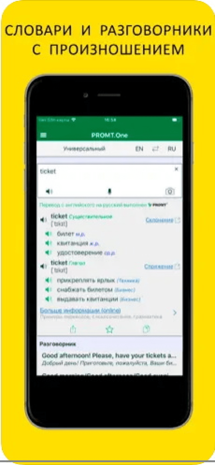 Скачайте Переводчик PROMT.One на свой iPhone или iPad и получайте самые точные переводы текстов и продиктованных фраз в любой момент.