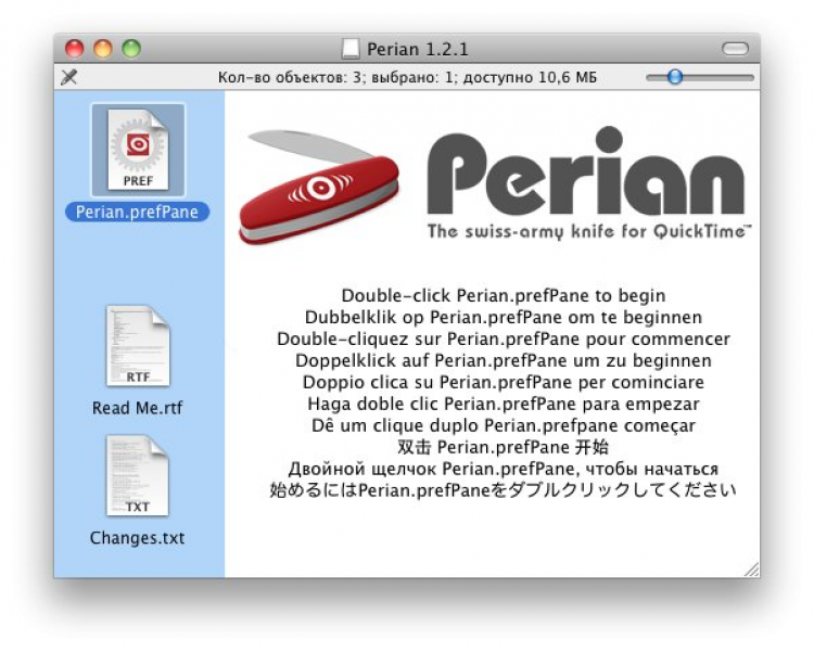 Perian Дополнительные кодеки для QuickTime.