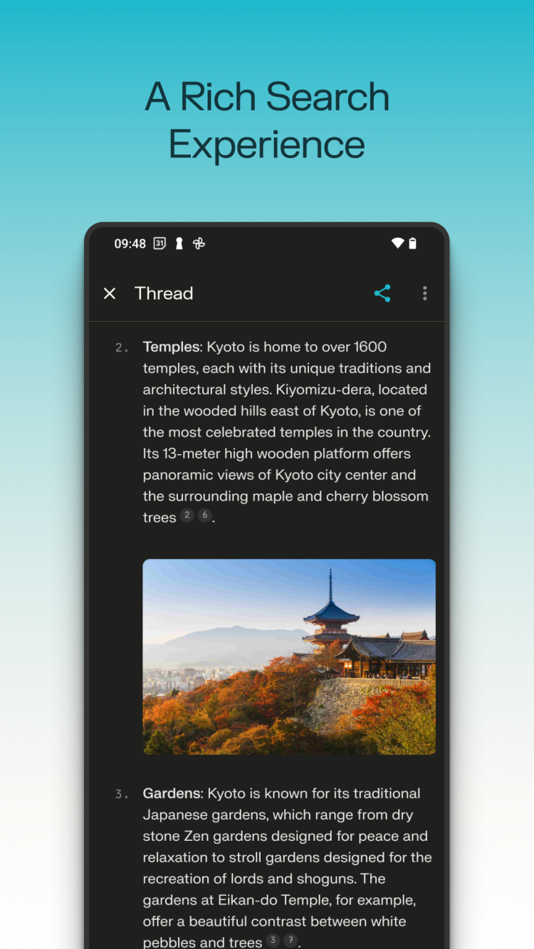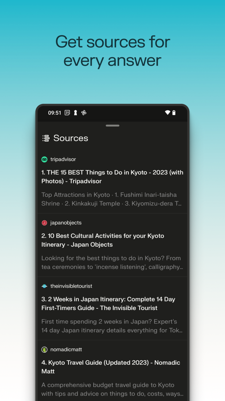 - информация о цитируемых источниках для каждого ответа, который вы получаете в приложении