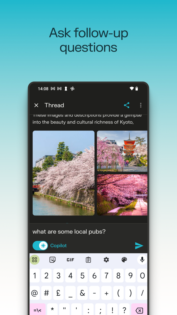 Одной из самых полезных функций приложения является возможность продолжить обсуждение вопроса. Это означает, что приложение не только дает ответы, но и поощряет более глубокое обучение, предлагая управляемый поиск подробных объяснений и связанных тем. Либо вы можете просто задать дополнительные вопросы, чтобы обеспечить более глубокое понимание темы.