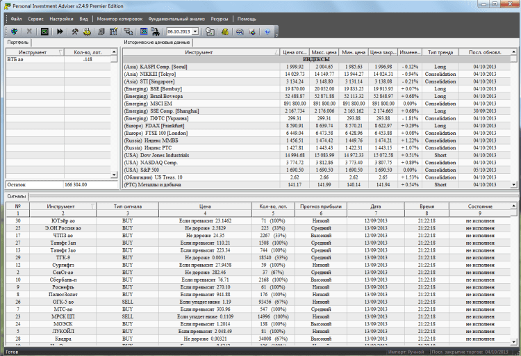Personal Investment Adviser - это программа, которая помогает принимать инвестиционные и спекулятивные торговые решения на российском рынке акций, фьючерсов и валютном рынке FOREX. С ее помощью Вы легко сможете найти и оценить те инструменты, которые могут принести доход в ближайшее время.