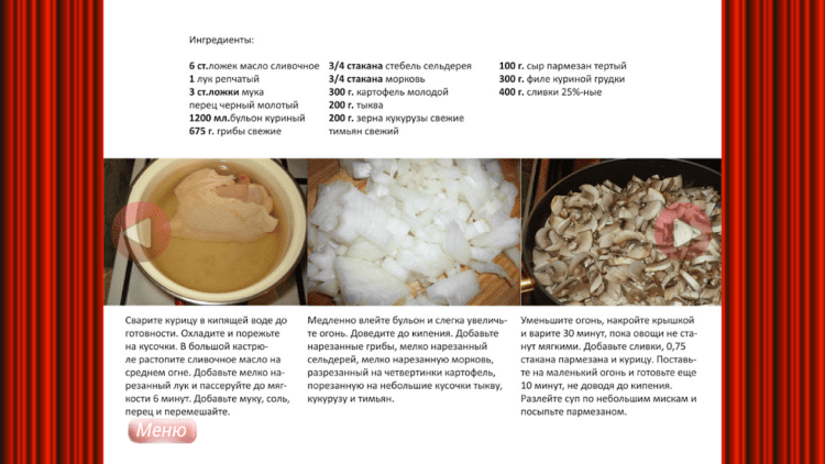 - грибной суп с курицей и сливками;