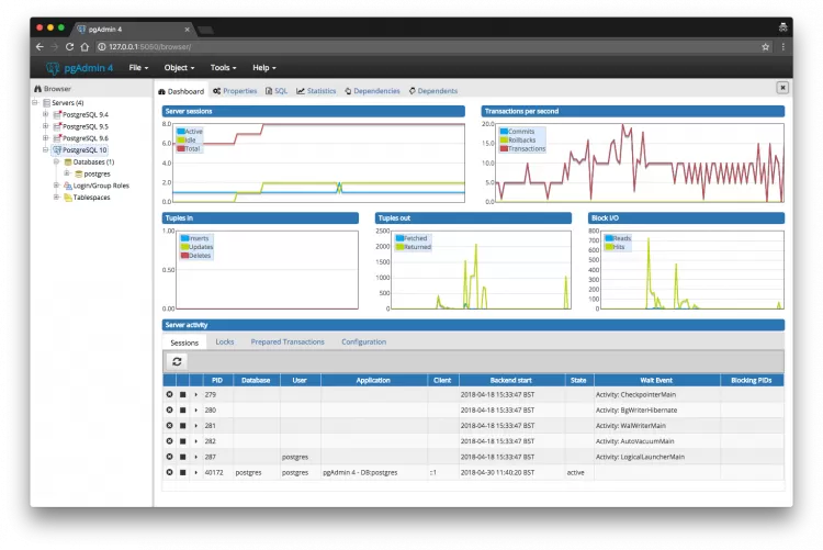 Стоит также отметить, что программа pgAdmin 4 обладает интерфейсом, приближенным к PostgreSQL, а также предоставляет доступ ко множеству полезных функций и инструментов, включая редактор SQL, подсветку синтаксиса, а также многое другое.