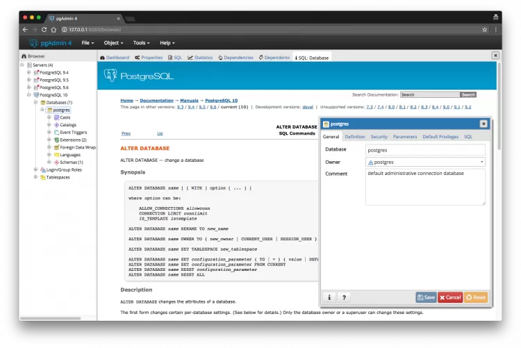 При помощи pgAdmin 4, вы сможете не только администрировать сервера PostgreSQL, но и без труда создавать базы данных. Для этого, программа предоставит вам полный набор всех необходимых инструментов.