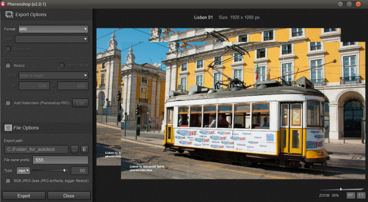 - экспорт и импорт файлов в форматах MPO, JPS, PNS, JPG, PNG, TIFF и BMP;
