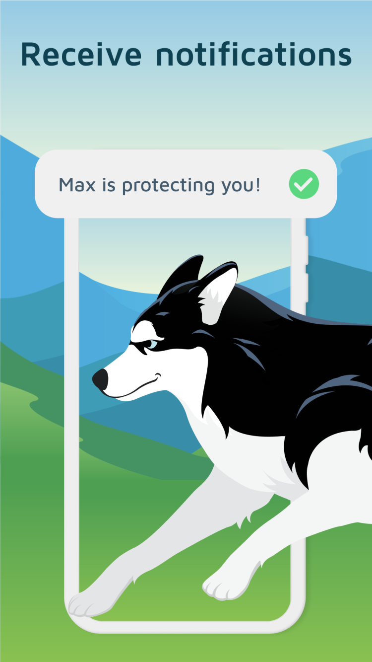 Phone Guardian Mobile Security — необычное VPN-приложение для смартфонов. Оно помогает защитить ваши данные и гарантировать, что ваши действия в сети останутся конфиденциальными, но в нем отсутствует одна функция, присутствующая в других VPN-клиентах. Phone Guardian Mobile Security не позволяет пользователям выбирать местоположение сервера. Вместо этого, оно предлагает вам... Виртуальную собаку: Хаски по имени Макс. Этот виртуальный питомец будет автоматически шифровать ваши данные и защищать ваши действия в сети при использовании домашнего или общественного Wi-Fi. Достаточно загрузить приложение и установить его на свой смартфон и защита будет включена автоматически. Все, что вам остается сделать, это наслаждаться безопасным и свободным доступом в сеть и играть с вашим новым виртуальным питомцем.