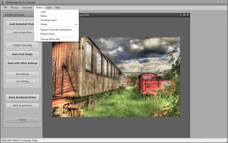 Photomatix Pro поддерживает пакетный режим работы с фотографиями. В этом режиме программа автоматически объединяет фотографии и применяет выбранный стиль обработки. В добавок она может обрезать, изменить размер, повернуть фотографии, уменьшить уровень хроматических аберраций, увеличить четкость и т.д.