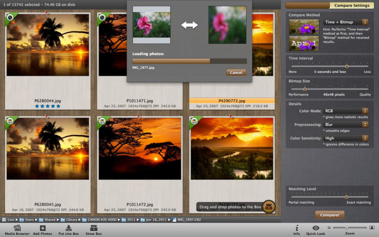 PhotoSweeper Программа для поиска, сравнения и удаления дубликатов фотографий. PhotoSweeper работает с библиотеками iPhoto, Aperture и Adobe Lightroom.