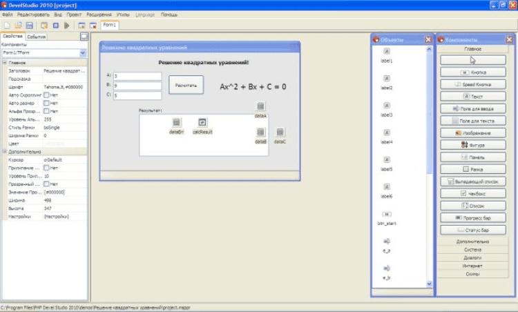 - Огромное количество компонент для создания интерфейса и функциональности программы;