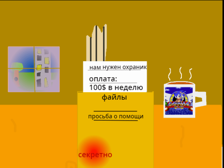 На первый день вам приходит письмо с просьбой о помощи и зарплатой в 100 Баксов в день. И вы соглашаетесь, как же отказаться? Переключайтесь с камеры на камеру чтобы спастись от Соника.