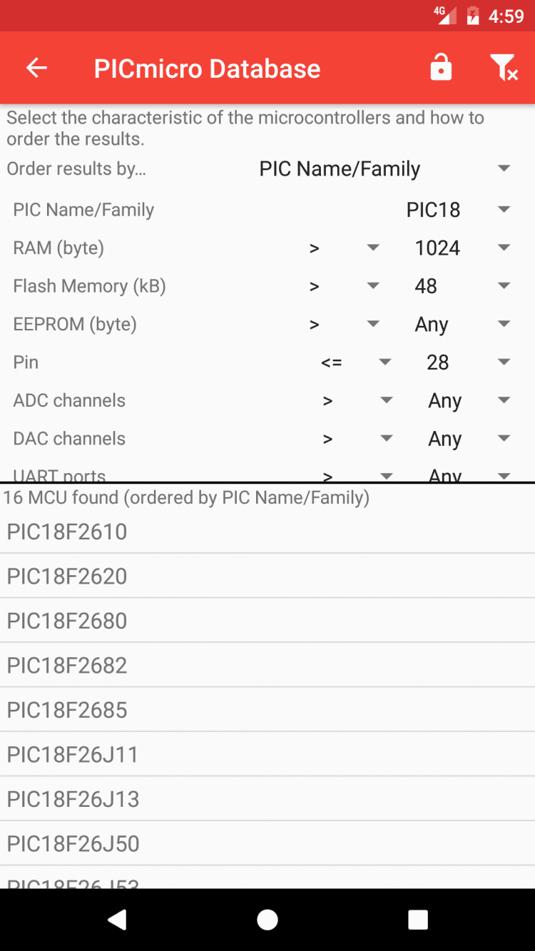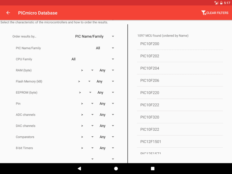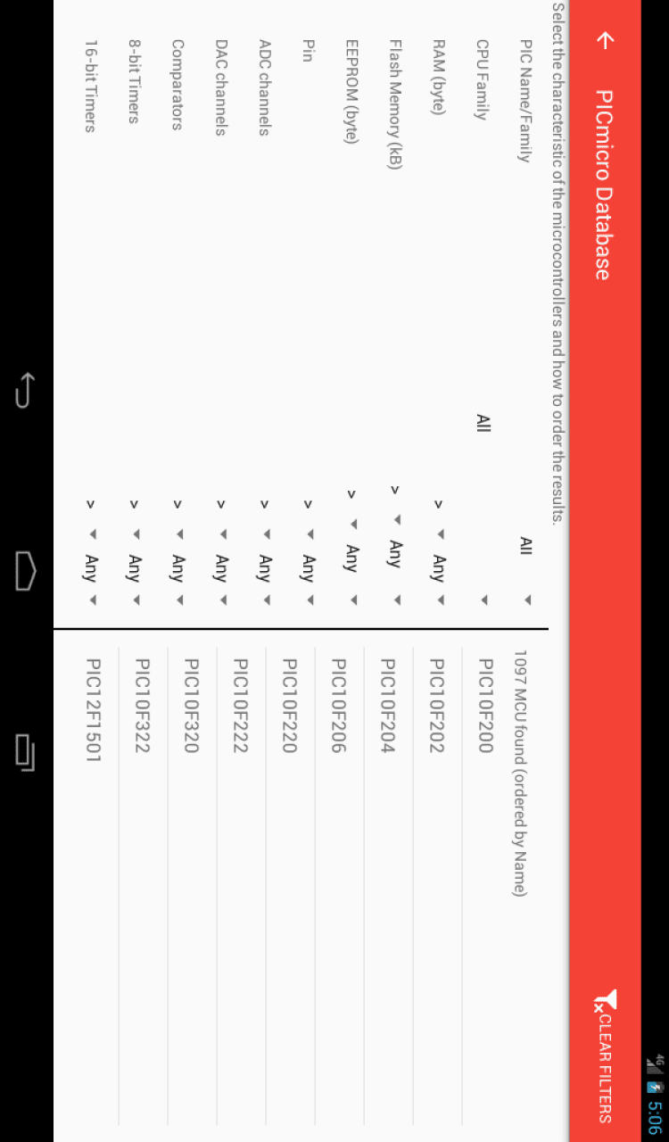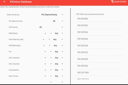 PICmicro Database Приложение, с помощью которого вы сможете узнать характеристики всех микроконтроллеров производства Microchip. Вы сможете выбрать подходящий для ваших целей микроконтроллер, читая свойства перечисленных в программе. Программу можно использовать бесплатно, но с рекламой.