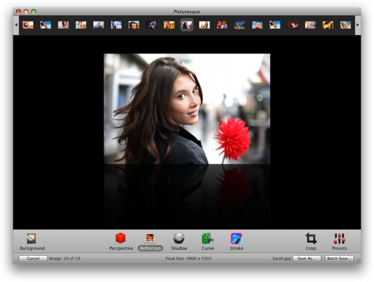 Picturesque Программа для улучшения качества изображений, предназначенных для загрузки в Веб. Picturesque позволяет изменять размер изображений, обрезать их и применять различные эффекты такие, как 3D-перспектива, отражение, тень, свечение, искривление и контур. А пакетный режим обработки позволит с легкостью редактировать целые папки изображений.