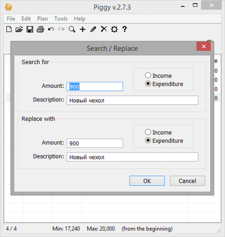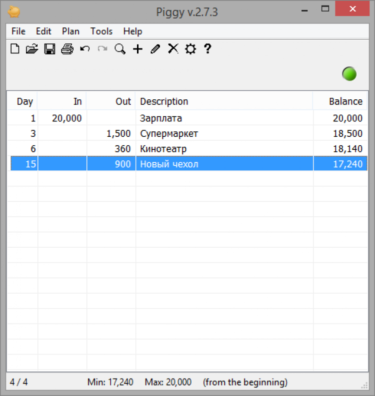 С помощью Piggy можно не только вести учет своего бюджета, но и планировать его. Внеся в таблицу все необходимые статьи, можно увидеть, хватит ли денежных средств, сколько останется, или на сколько бюджет окажется превышен.