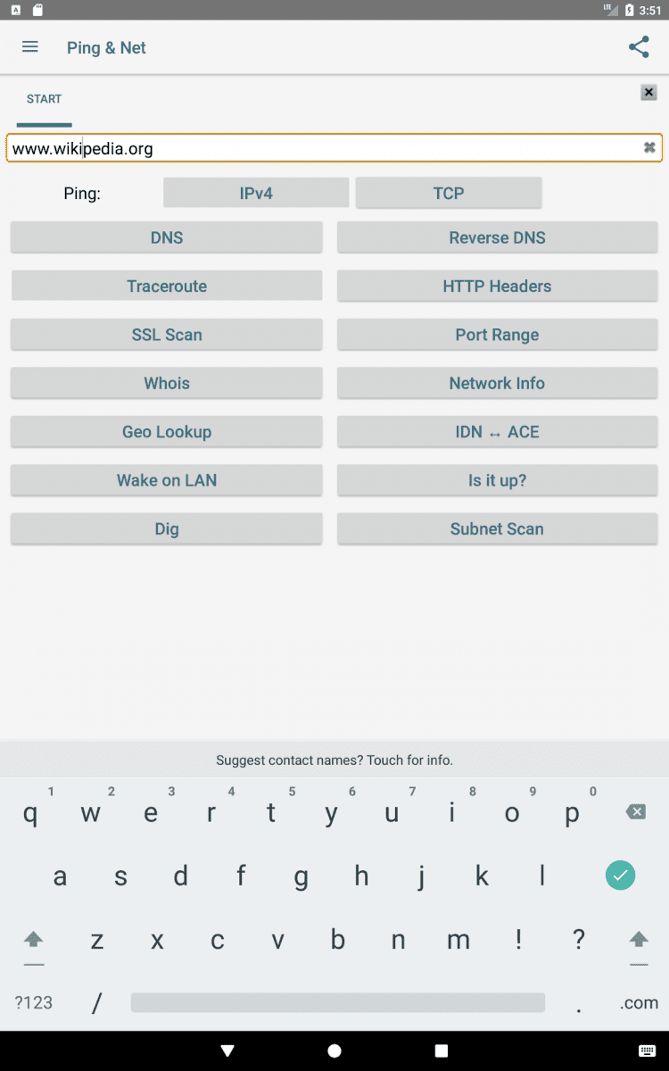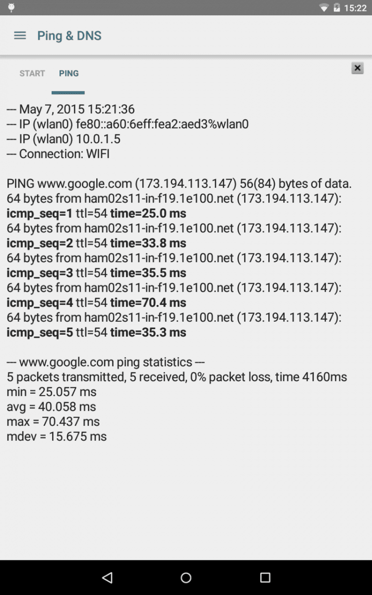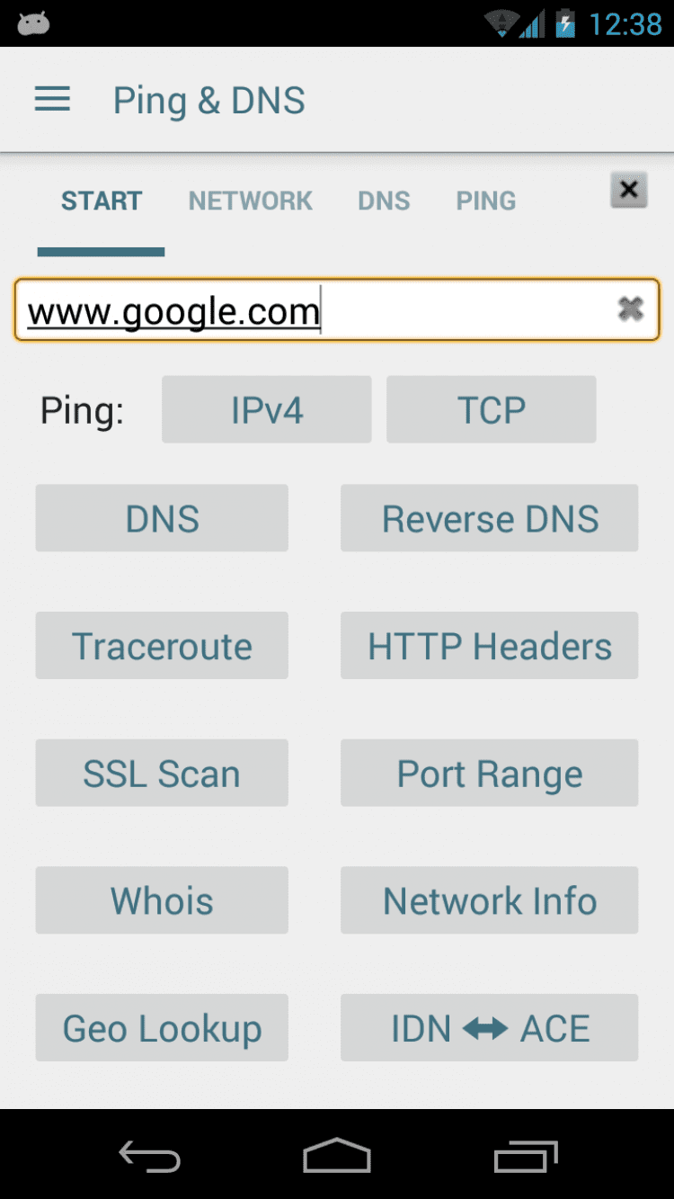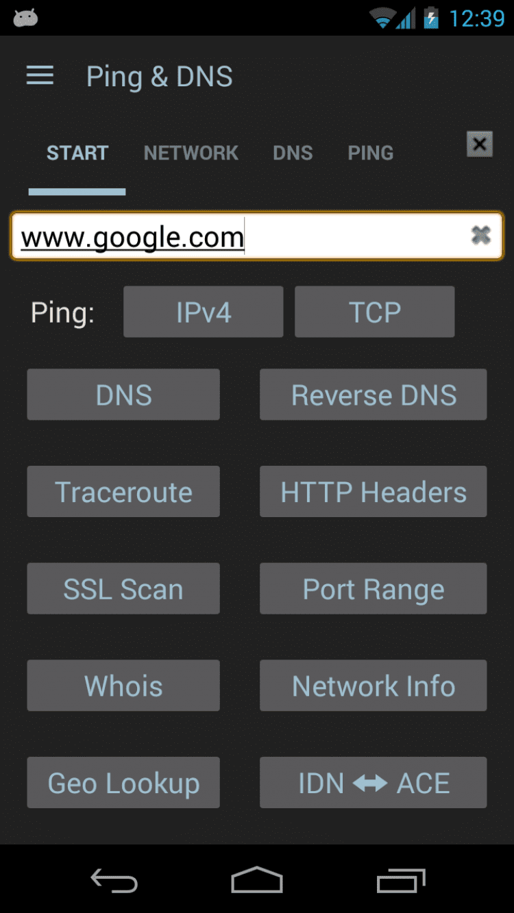 Ping & DNS — эта программа отображает информацию о сетях и позволяет произвести их диагностику. Благодаря этой программе, вы сможете пинговать сервера через IMCP и TCP, выполнять географический поиск DNS по IP-адресу, обратный DNS-поиск, запросы WHOIS, проверять заголовки откликов HTTP, трассировку маршрутов, проверять диапазон открытых портов, а так же сохранять результаты в формате PDF, отправлять по электронной почте или копировать в буфер обмена.