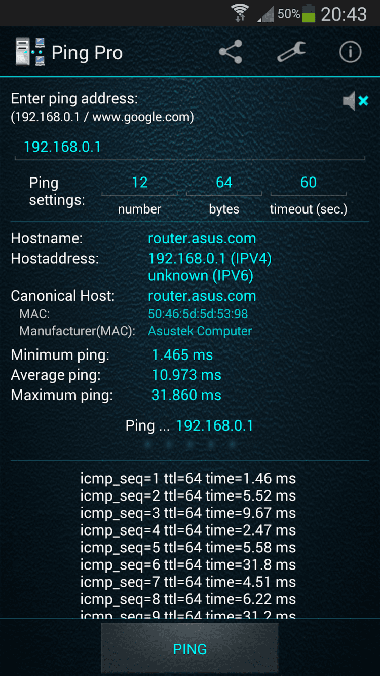 Ping Pro — это программа, которая позволит вам определить время отклика удаленного сервера и сохранить результат проверки в текстовом файле в памяти вашего устройства, либо на облачном хранилище. Вы сможете самостоятельно настраивать размер пакетов, количество попыток и максимальное время ожидания.