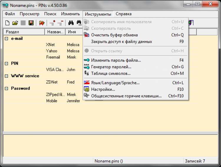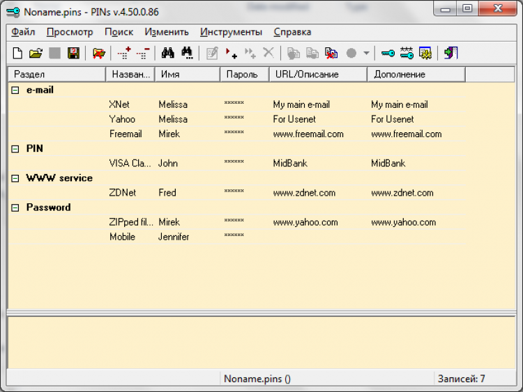 PINs - эта программа, предназначенная для хранения паролей, пинкодов. Использует надежный алгоритм шифрования и мастер пароль для обеспечения защиты информации. Программу можно установить на съемный носитель.О на не требует никаких дополнительных библиотек или прочих компонентов, а значит ее можно запускать со съемного носителя на любых компьютерах под управлением Windows.