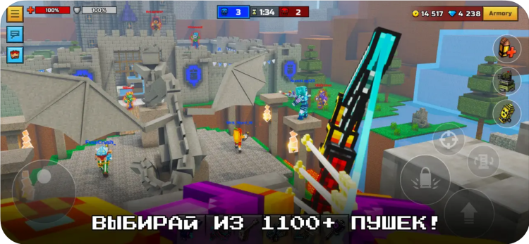 Pixel Gun 3D — это шутер от первого лица, визуально похожий на Minecraft. Позволяет играть в одиночном режиме оффлайн или с другими игроками онлайн. Предлагает широки выбор режимов, арен, снаряжения, скинов и питомцев. Также позволяет крафтить различные предметы, которые используются в сражения.