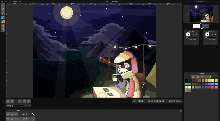 Данный редактор доступен бесплатно и разрабатывается с открытым исходным кодом. Он предлагает отличную возможность попробовать свои силы в пиксель-арте в качестве хобби, или же может быть использован при разработке полноценной видеоигры.