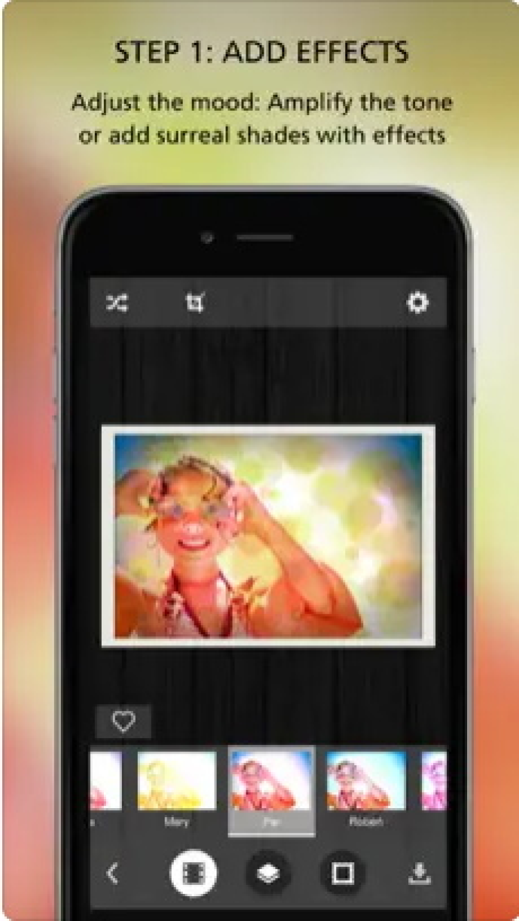 Pixlr-o-matic Отличное приложение, содержащее более 2 млн комбинаций эффектов, фильтров и рамок, с помощью которых вы сможете сделать неповторимую и удивительную фотографию!