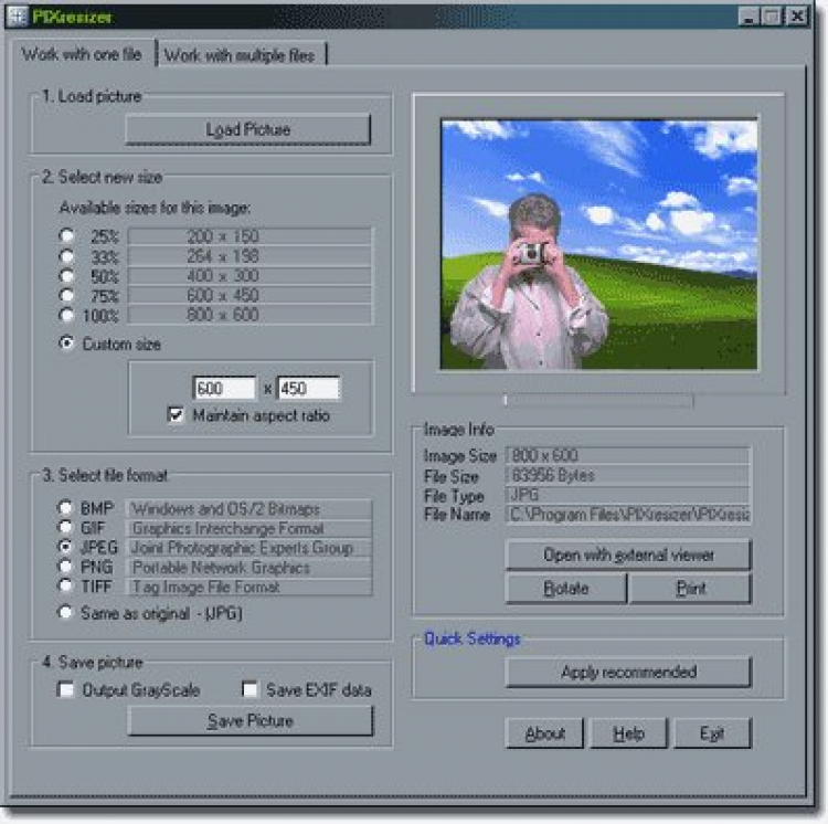 PIXresizer - это утилита для изменения размера графических файлов.