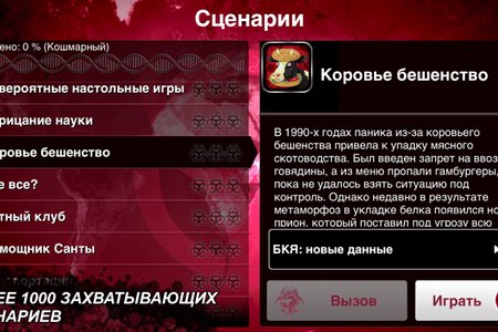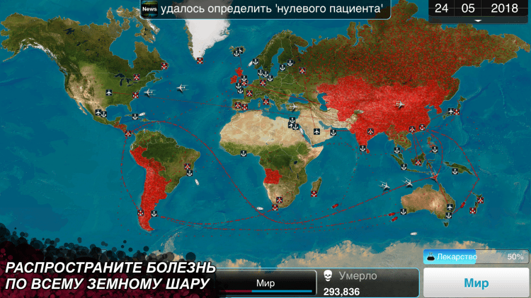 Plague Inc. — в этой игре вам предстоит развить смертоносный вирус и заразить им население всей планеты. Развивайте симптомы, устойчивости и способы заражения, а так же помогите своему вирусу распространиться по всему миру. Игра Plague Inc. обладает прекрасной графикой, возможностью сохранения и загрузки игр, подробной справкой и обучающей системой, более 50 стран для заражения, сотни характеристик болезни, 12 различных типов болезни с совершенно разными стратегиями развития, системой игровых достижений, а так же рядом дополнений.