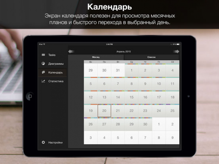 - 2 режима просмотра календаря;