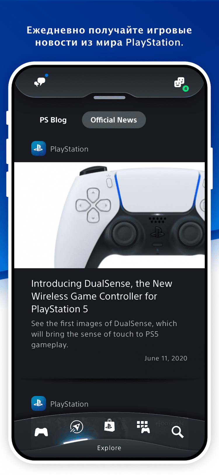 - получение уведомлений о новых продуктах линейки PlayStation и игровых оповещений;