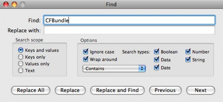 Для облегчения поиска файлов в программе есть встроенный файловый браузер, которые сканирует все системные директории и выдает список найденных файлов. Так же есть функция поиска, с возможностью замены найденных элементов. Помимо этого стоит отметить интеграцию в XCode и
