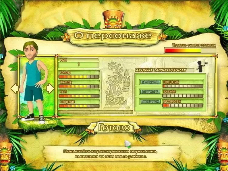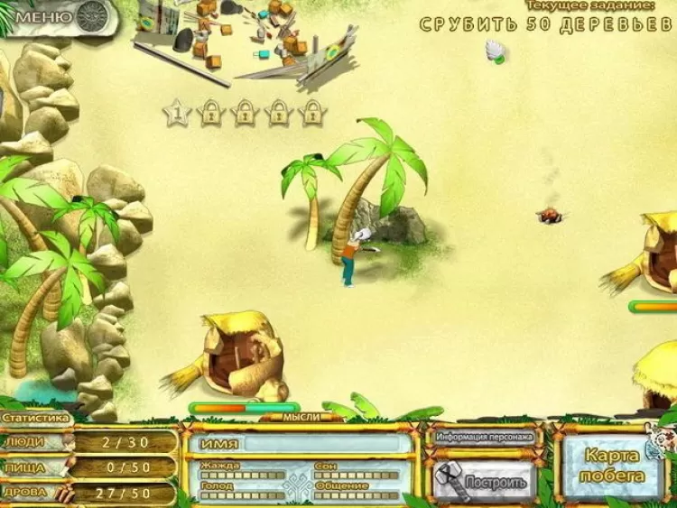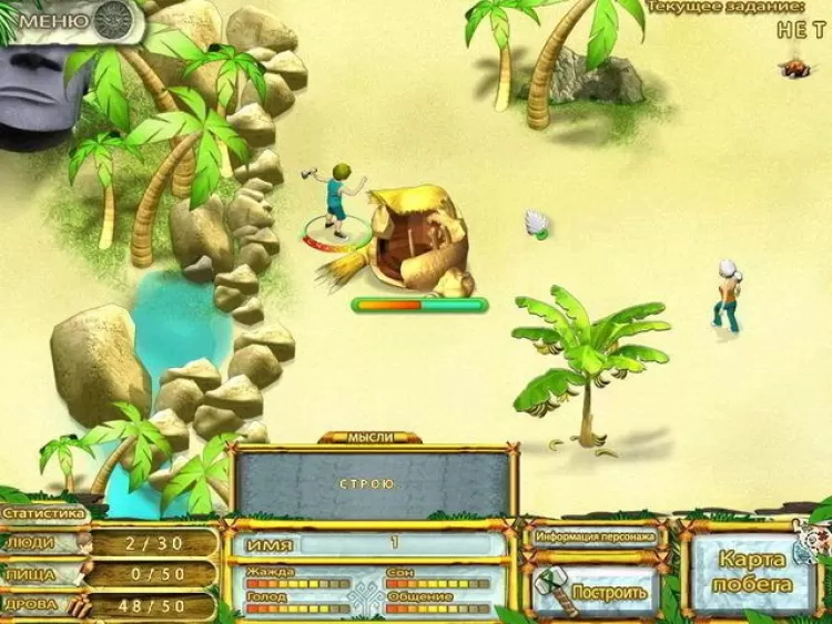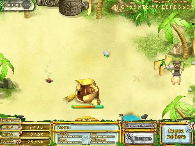 Ваша основная задача выжить на острове и найти способ вернуться к цивилизации. Для этого вам нужна карта побега. Где ее взять? Вполне возможно, что она есть у вождя единственного племени в этом месте они называют себя Тики. Попробуйте войти в доверие к туземцу, выполняя его поручения, и добыть карту. Все, что ждет от вас Тики, не так уж и сложно, но требует сноровки: наколоть дров, построить хижину, выкопать колодец, добыть еды. Эти навыки вам обязательно пригодятся для выживания в диких условиях!