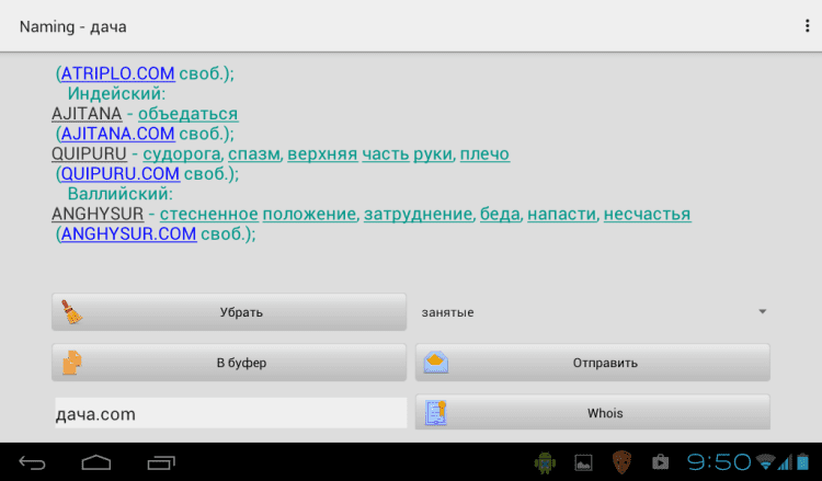 Подбор названия происходит по словарям экзотических языков. В связи с этим подобранные слова на латинице могут быть редкими, красивыми, со смыслом и незанятыми, даже в популярных интернет доменах.