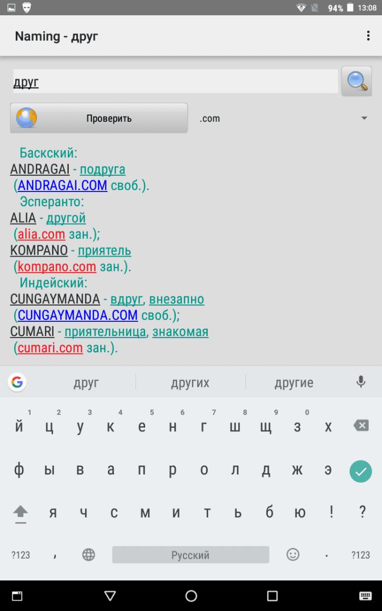 Вам не нужно знать никаких языков, кроме русского. Достаточно ввести слово или тему по-русски и получить варианты имени на латинице не заданную тему. Благодаря использованию в приложении словаря ассоциаций, Вы получите не только прямые переводы на экзотические языки, но и слова, имеющие близкое или косвенное отношение к заданной теме.